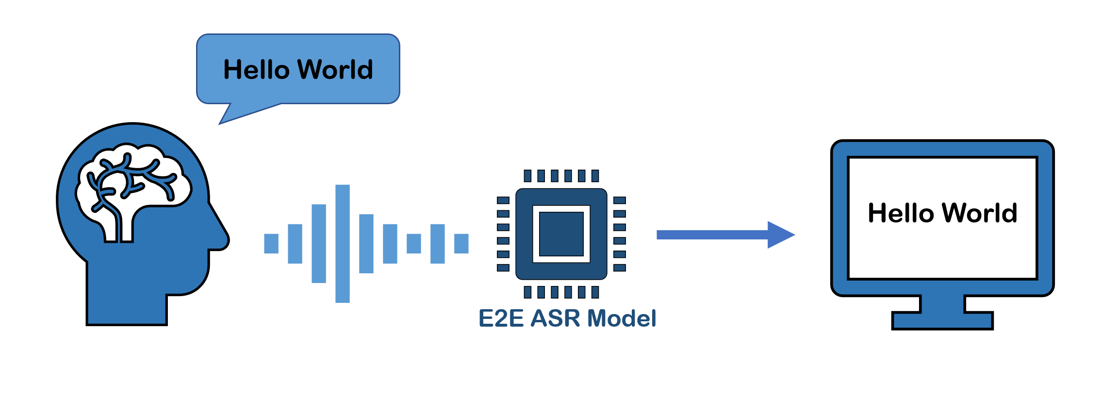 E2E ASR 모델은 음향 입력에서 특징(feature)을 추출하는 특징 추출기(feature extractor)과 feature와 레이블 출력 사이의 정렬(alignment)를 맞추는 부분, 최종 결과를 디코딩하는 디코더로 구성되어있습니다. 하지만 HMM과는 달리 모든 부분들이 별도의 훈련 과정 없이 한번에 함께 훈련됩니다. 그렇기 때문에 별도의 모델링이 필요하지 않고, 목적 함수에 맞는 최적 값(Global Optima)을 얻을 수 있습니다.